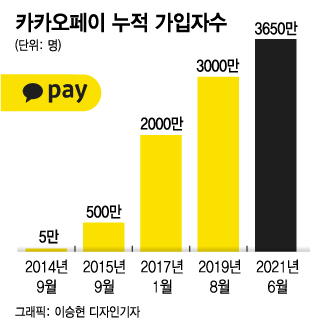 카카오페이 월 거래액 10조원 돌파 4년 만에 10배 성장 아주경제
